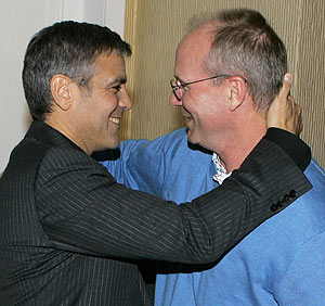 Uno de los que estuvo más extrovertido fue George Clooney, y no es para menos ya que cuenta con tres nominaciones en la cartera, siendo uno de los nombres que más posibilidades reales tienen de galardón. Clooney comentó que es realista y que no cree que vaya a ganar. Cuando se cruzó William Hurt, nominado como actor de reparto por "Una historia de violencia", le espetó un: "Y el Óscar es para...George".
