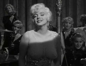 Wilder cuenta además la entrada en la película de Marilyn: Estábamos rodando la escena en la que ella aparece por primera vez en el andén de la estación: Lemmon y Curtis vestidos de mujer y Marilyn con su ukelele. Ella se me acercó y me dijo rapidamente: "Billy, se te tiene que ocurrir algo. La escena no funciona. Si yo me limito a andar