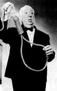 (Hitchcock de pie cerca de un potro de tortura):