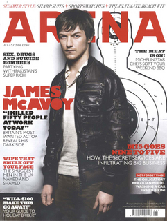 * En Arena, James McAvoy se pone duro y cierra los puños. El escocés admite que su afición a las "malas palabras" le dificulta sus rondas de entrevistas. McAvoy también comenta lo raro y difícil que es manejarse con su creciente fama, especialmente cuando las fanáticas lo persiguen hasta en baños públicos: "La gente nunca es atrevida conmigo, pero realmente me parece preocupante cuando estoy en un baño público y el tipo del lado te dice
