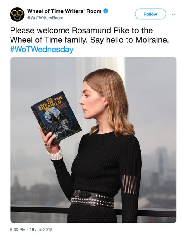 Rosamund Pike (que también será productora) dará vida a Moiraine en la serie que ya prepara Amazon como una mujer que tiene acceso a la magia que será clave en su lucha con cinco hombres y mujeres (uno de ellos el Dragón Renacido) con el fin de salvar al mundo. Se estrena en Noviembre de 2021 y primeras imágenes en Entertainment Weekly.