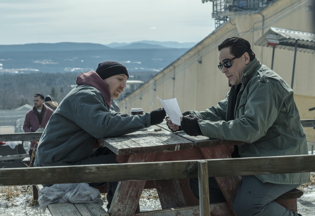 Uno de los grandes aciertos de “Fuga en Dannemora” es el retrato de personajes, complejo psicológicamente y con sus aristas emocionales pero donde la serie nos gana definitivamente es en cómo muestra ese cambio de roles. El Richard Matt, dominador, altanero y chulesco, además de amante de la pintura, que pone en la mente de su compañero la semilla del deseo de huida, acaba siendo un gato asustado que bordea la locura fruto de una inseguridad que mina su aparente coraza de poder una vez que ya se ha hecho a su entorno carcelario, mientras que David Sweat (a pesar de su inicial falta de iniciativa) se revela como el auténtico artífice, peón y ejecutor de que ambos puedan salir de prisión siendo el que hace todo el trabajo sucio en noches de vela mientras trabaja con ahínco en los subsuelos de la prisión convencido de que, a pesar de lo quimérico de la empresa, no tiene nada que perder siendo las montañas de Canadá la frontera que marcará el éxito de su huida.