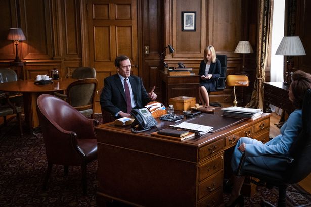 Este diálogo lo suelta Hugh Laurie, en el papel de un ministro del gobierno conservador inglés en esta miniserie BBC de cuatro capítulos, donde representa a un político conservador, salido del pueblo, que protagoniza incluso un programa de radio semanal en el que responde a los oyentes con desparpajo y seguridad.