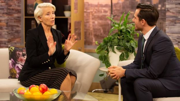 Los Lyon se tienen a ellos y a sus preocupaciones del día a día, así como una inteligencia artificial ya incorporada sin ninguna extrañeza, mientras asisten por televisión al surgimiento de una nueva figura en el panorama político, una cínica empresaria, Vivienne Rock, que irrumpe con un nuevo partido político (el de los cuatro asteriscos) con mensajes xenófobos, altaneros y, sobre todo, nada políticamente correctos, pero teniendo muy a gala de decir lo que otros sólo piensan, en una sociedad en la que la dictadura de lo políticamente correcto ha aprovechado el aborregamiento y conformismo de muchos para la aparición de figuras políticas de extremo marcaje ideológico que han pasado de ser una anécdota a ser una realidad cada vez más presente a nivel mundial. Una Emma Thompson que se nota que ha disfrutado con un papel que, tristemente, pierde cualquier matiz paródico siendo una analogía de tantos ejemplos reales que se nos pueden ocurrir.