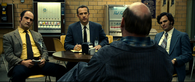 El magnífico guión de Vanderbilt dibuja toda una pléyade de personajes secundarios, engarzados con maestría, con diálogos brillantes cargados de ironía, humor y constantes guiños a las distintas épocas en las que discurre la película. “Zodiac” nos sumerge en un viaje incómodo a lo largo de tres décadas en el que a cada paso que da la película, en vez de avanzar hacia un final resolutorio del caso Zodiac, avanzamos hacia un callejón sin salida. Como lo fue en la realidad en la que se inspira. No hay concesiones ni giros ni trucos. Una historia que no comienza por el principio y que tampoco tiene final. Algo que el propio Fincher justificaba: “Ésta es una historia sobre personas frustradas y yo he querido que el espectador les acompañe en esa frustración, que el espectador se agote, que sienta ese cansancio con ellos. No ofrezco un viaje fácil. Quiero provocar en el espectador una catarsis emocional, ése es el tipo de cine que me interesa, el que deja cicatrices. Quizá es una película excesiva, pero como mucho me disculpo por ello".