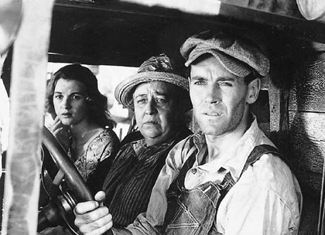 Otra obra transgresora fue la novela “Las uvas de la ira” con la que John Steinbeck fue galardonado con el premio Pulitzer en 1940. El autor quiso plasmar su indignación por las condiciones en las que vivieron las grandes víctimas de la Gran Depresión debido al crack de 1929 que se complicó con las enormes sequías que afectaron a los Estados Unidos entre los años 1932-39 y que provocó que aproximadamente tres millones de personas abandonaran sus granjas al Oeste, protagonizando el mayor movimiento migratorio dentro del país. Al exponer de una manera tan directa las condiciones infrahumanas en las que vivían y trabajaban los protagonistas de la novela provocó que que ésta fuera repudiada pero siempre se encontraba la manera de leerla, así que terminó siendo un fenómeno y no tardó nada en ser llevada al cine por John Ford que se alzó merecidamente con el Oscar en la edición de 1941. Tom Joad (un impecable Henry Fonda) es un joven que acaba de salir de la cárcel y no tiene más remedio que huir junto a su familia a California. Ford nos dejó imágenes icónicas principalmente cuando Jane Darwell como la madre (ganadora del Oscar) estaba presente.