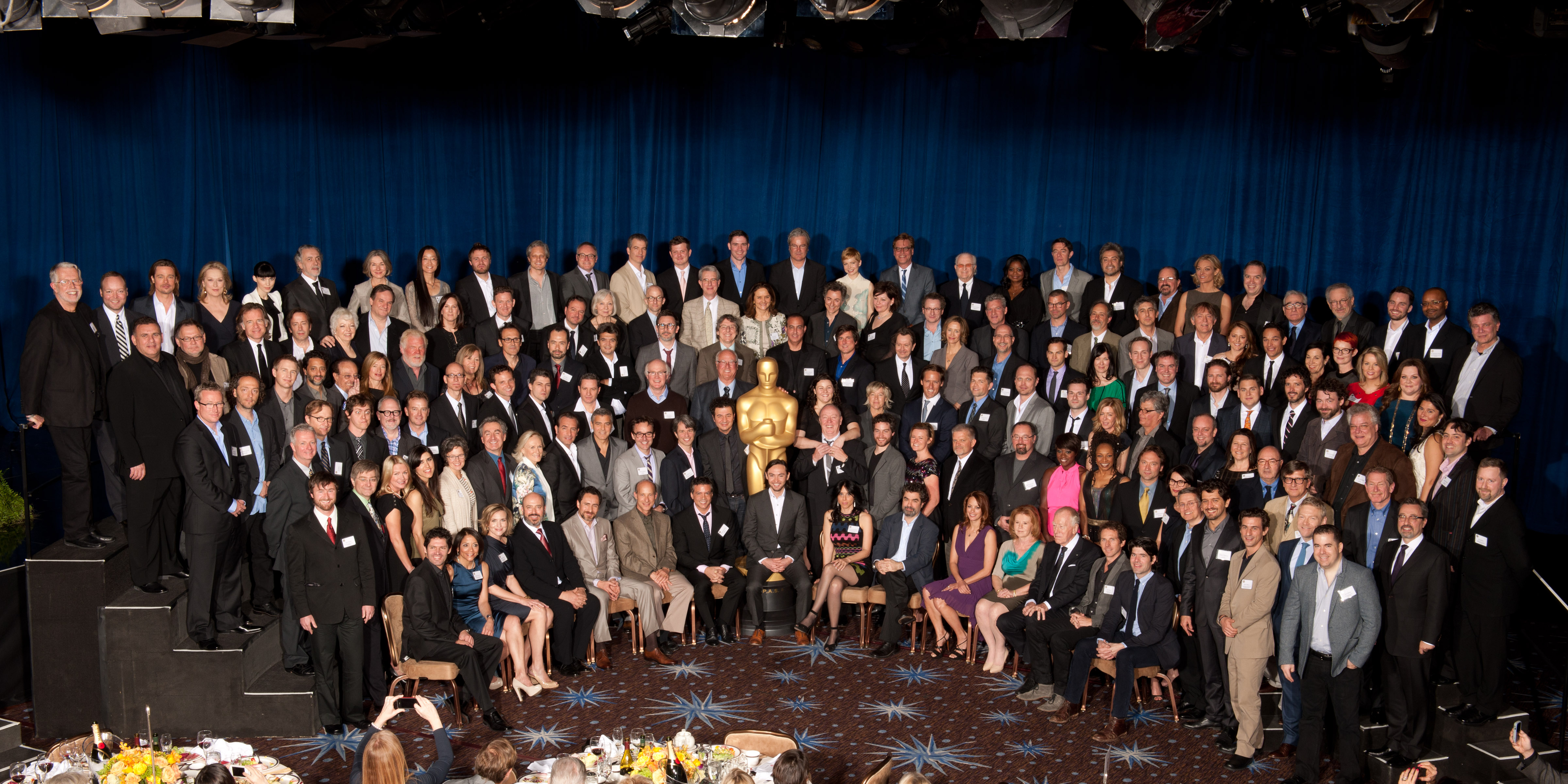 La Academia de Hollywood celebró el habitual almuerzo de nominados. Un momento a algo más de dos semanas de la ceremonia para que los distintos candidatos compartieran experiencia y sensaciones de una manera más distendida. Entre las ausencias destacaron las de Christopher Plummer, gran favorito al Oscar de actor de reparto por “Beginners (Principiantes)”, y la de Jessica Chastain, candidata por “Criadas y señoras”. Por supuesto, nadie esperaba ver por ahí a Woody Allen y Terrence Malick, habituales ausentes en este tipo de saraos y candidatos al Oscar de mejor director. Puedes ver una galería completa del evento aquí.