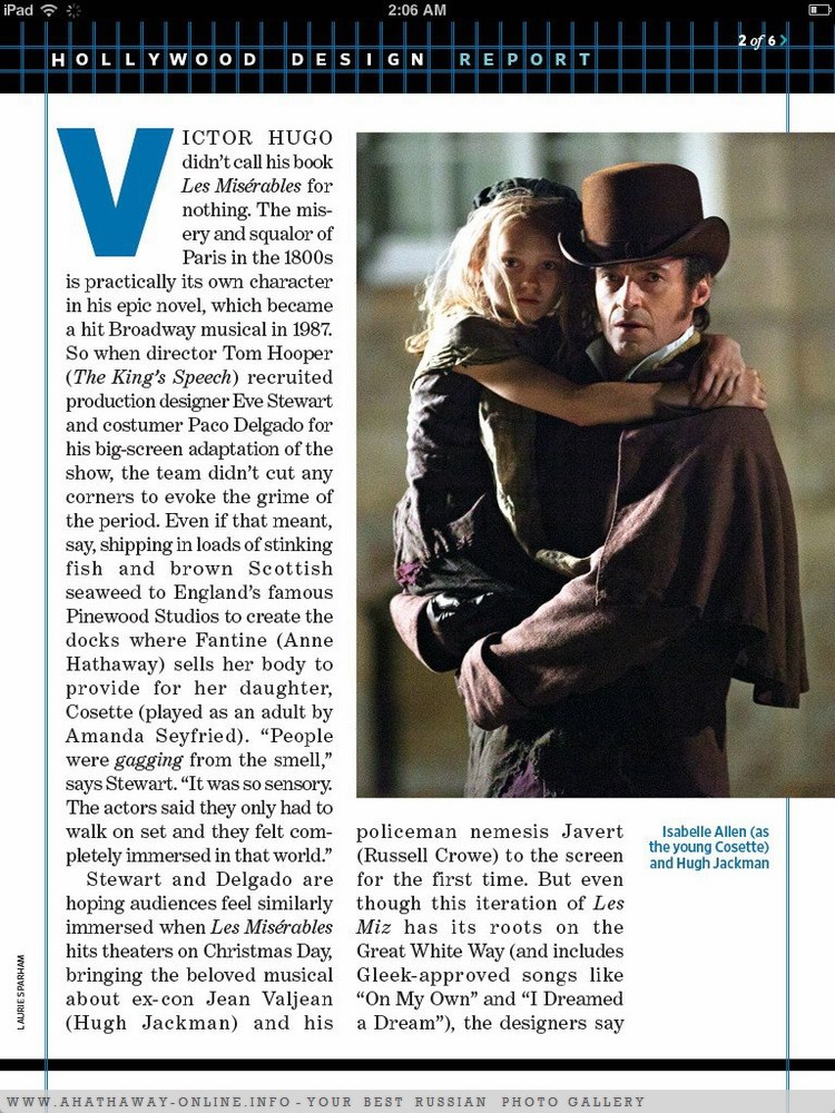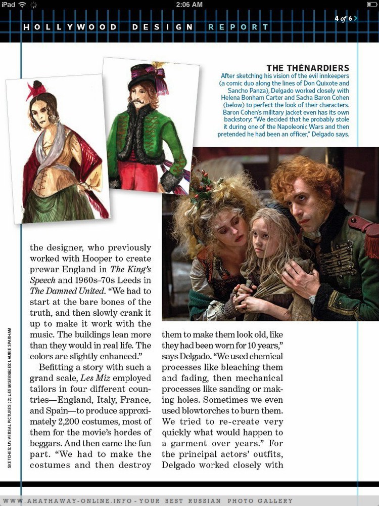 Eso sí, si hay un español a día de hoy que creemos que tiene la nominación asegurada (y quien sabe si la victoria) ese no es otro que Paco Delgado, el diseñador de vestuario de "Los miserables". Candidato dos veces al Goya por “Balada triste de trompeta” en 2011 y “La piel que habito” en 2012, Delgado se doctora a lo grande con esta gran producción en la que le ha sido confiada el apartado del vestuario, siempre un valor añadido en una cinta que se desarrolla en el siglo XIX. Te dejo el excelente reportaje que le ha dedicado EW. La nominación se puede dar por hecha, y con Jacqueline Durran como gran rival por “Anna Karenina”, hay altísimas posibilidades de que Delgado se lleve este premio a casa.