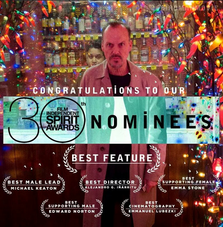 Primeras nominaciones importantes de la temporada de premios y primera cita que respalda a nivel de candidaturas a "Birdman", la película de Alejandro González Iñarritu. Con 6 candidaturas manda en la 30ª edición de estos premios por delante de "Boyhood", "Selma" y "Nightcrawler" que empatan con 5 menciones. La gran ausencia es "The imitation game" que sí que podía competir en estos premios (se supone que el límite para poder competir aquí son 20 millones de dólares de presupuesto) y que supone un jarro de agua fría para los Weinstein y sus artimañas. Han salido también reforzadas "El amor es extraño" y "Whiplash", candidatas en el apartado de mejor película. Como es tradición, los premios se entregarán el 21 de Febrero, un día antes que los Oscar.