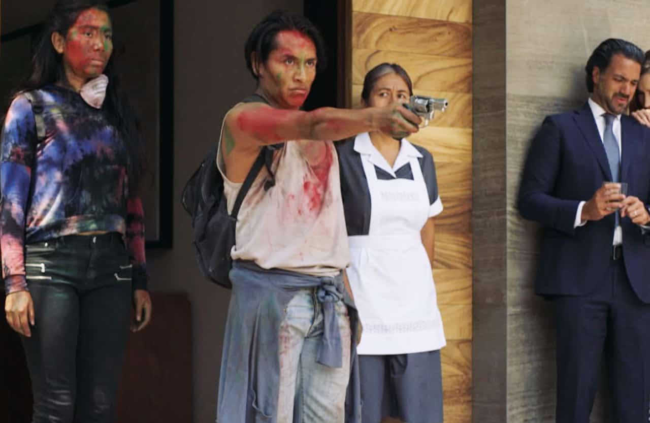 Una alegoría siniestra y retorcida con altas dosis de crueldad entre desapariciones, rescates, sangre, persecuciones en coche, secuestros, fuerzas de la ley que se suman al golpe y chantajes en una sociedad tan separada entre sí, distante y dispar, en la que las clases bajas, obreros e indígenas en su mayoría, no han encontrado otra manera más que entrar por la puerta a la fuerza arramblando con todo, dando por perdida la capacidad de entenderse y optando por un punto de vista darwinista en el que las convergencias no casan en un momento en el que lo que se disputa es el trono demostrándose que la violencia no hace más que generar violencia.