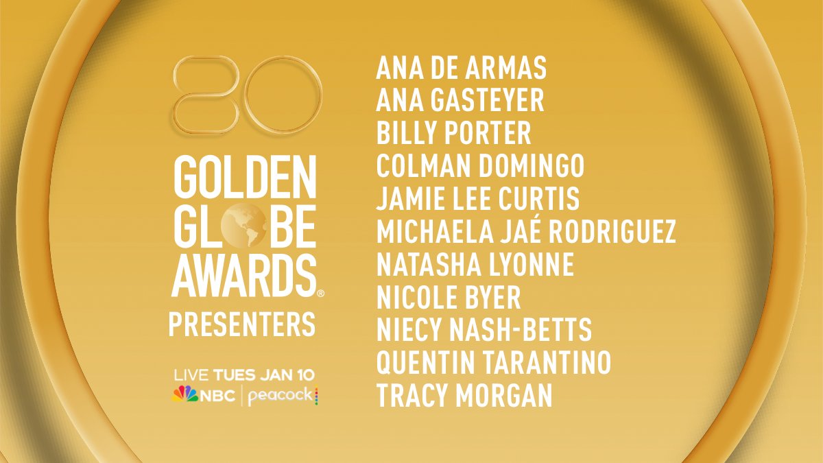 Actualización (03/01/2023): Listado de presentadores para la 80ª edición de los Globos de Oro.