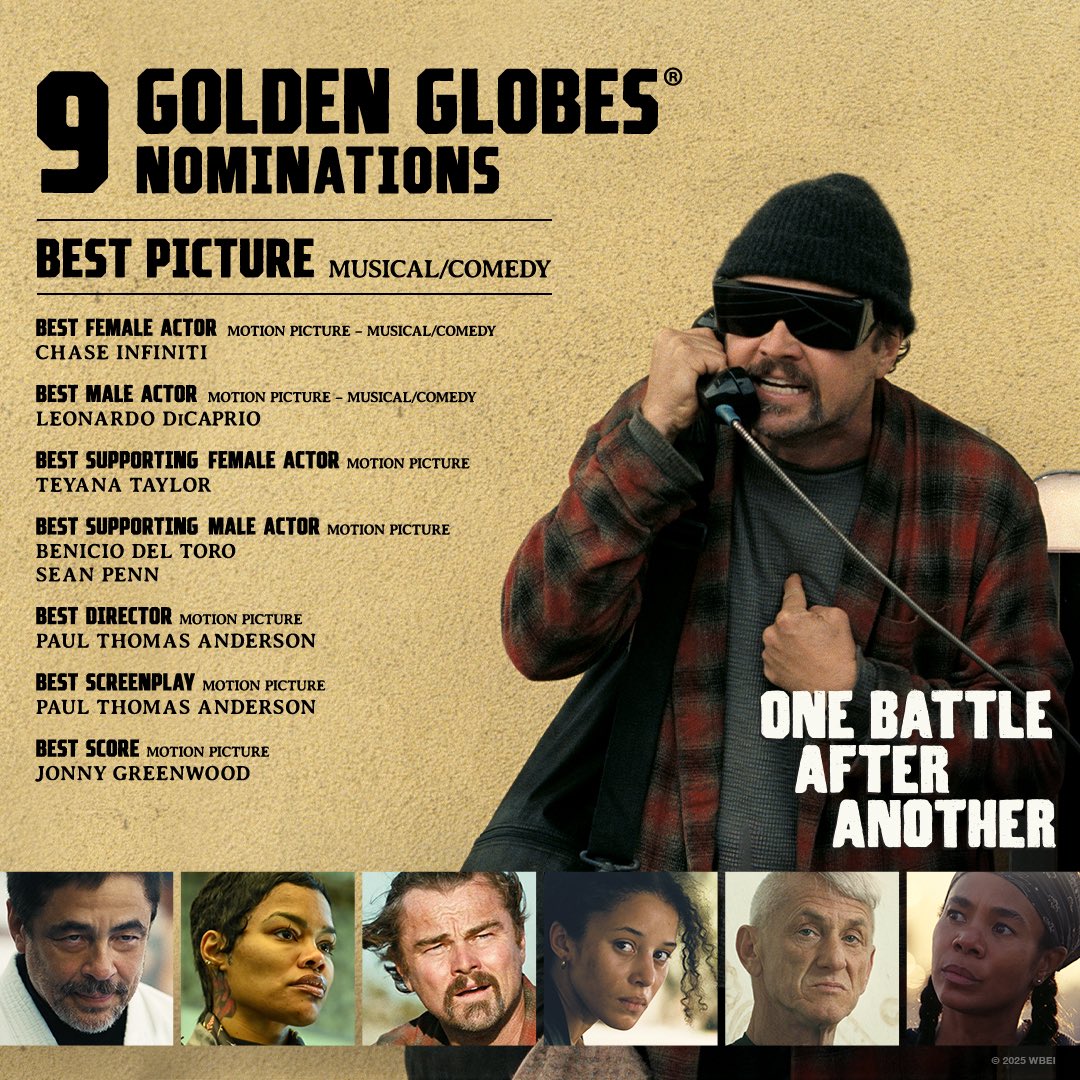 * "Una batalla tras otra" consigue 9 nominaciones y empata en el registro histórico con "Lawrence de Arabia" (1962), "Cabaret" (1972) y "Barbie" (2023). Sólo están por delante las 11 candidaturas de "Nashville" (1975) y las 10 de "Emilia Pérez" (2025).