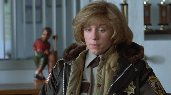 El film nos regaló a Marge Gunderson, la jefa de la policía local, bastante ingenua y embarazada de 7 meses, que asume la investigación de los asesinatos. Un personaje que sobre el papel era un caramelo, que desde luego no fue concebido para ganar premios, pero que gracias al talento de una actriz tan portentosa como Frances McDormand se convirtió en uno de los iconos del universo de los Coen y logró que los académicos se rindiesen ante ella, la actriz ya había sido nominada por “Arde Mississippi”. La McDormand, que en ese momento contaba con 39 años, tenía dos grandes rivales que perfectamente pudieron ganar, a pesar de que participaban en dos películas muy pequeñas, por un lado Emily Watson, que había impactado con su interpretación en “Rompiendo las olas” y por el otro Brenda Blethyn con “Secretos y mentiras”. Las otras aspirantes eran Kristin Scott Thomas (“El paciente inglés”) y Diane Keaton (“La habitación de Marvin”).