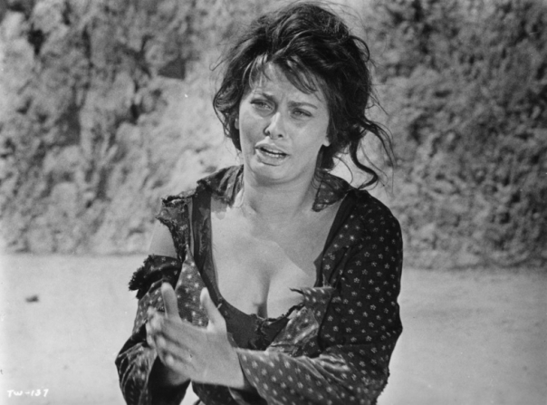 Cuando se estrenó el film en Italia en Diciembre de 1960 tanto la crítica como el público se quedaron conmovidos por el trabajo tan descarnado hecho por la Loren, que se alejaba completamente de su vis cómica, pero no se desprendía de su carga erótica ni poniéndose un burka al interpretar a una mujer tan marcada por el horror de la guerra. Es especialmente escalofriante la escena en la que ella y su hija son violadas por un grupo de soldados marroquíes pertenecientes al ejército francés. Meses más tarde la crítica internacional encumbró a la actriz cuando la película se presentó en el Festival de Cannes y se llevó el premio a la mejor interpretación femenina, y también arrasó con casi todos los galardones cinematográficos posteriores. A los 27 años logró que por primera vez la Academia reconociese una interpretación realizada en lengua no inglesa. Su gran oponente, fue Geraldine Page por “Verano y humo”, que fue la que se llevó el reconocimiento de la crítica usamericana, aunque no hay que dejar atrás a una inolvidable Audrey Hepburn en “Desayuno con diamantes”. Las otras aspirantes eran Natalie Wood (“Esplendor en la hierba”) y Piper Laurie (“El buscavidas”).