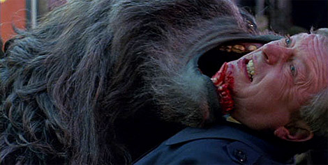 Geniales las apariciones de Jack, no se sabe muy bien si en sueños, pesadillas o realmente como zombi Pepito Grillo… Apoteósico. Y es que, como ya hemos comentado, Jack se irá apareciendo a su amigo David a lo largo de la historia, cada vez más decrepito, aconsejándole que se autoinmole para acabar con tanta muerte y para que finalice con su deambular de muerto en vida o de no muerto, puesto que todas la victimas del lobo vagarían como zombis hasta que se extinga la estirpe del lobo. He aquí uno de los elementos que Landis introdujo en los relatos de hombres lobo y que hacen de él una obra tan inconfundible. Amén de aquel fino humor negro y de aquella música tan lograda y atinada.