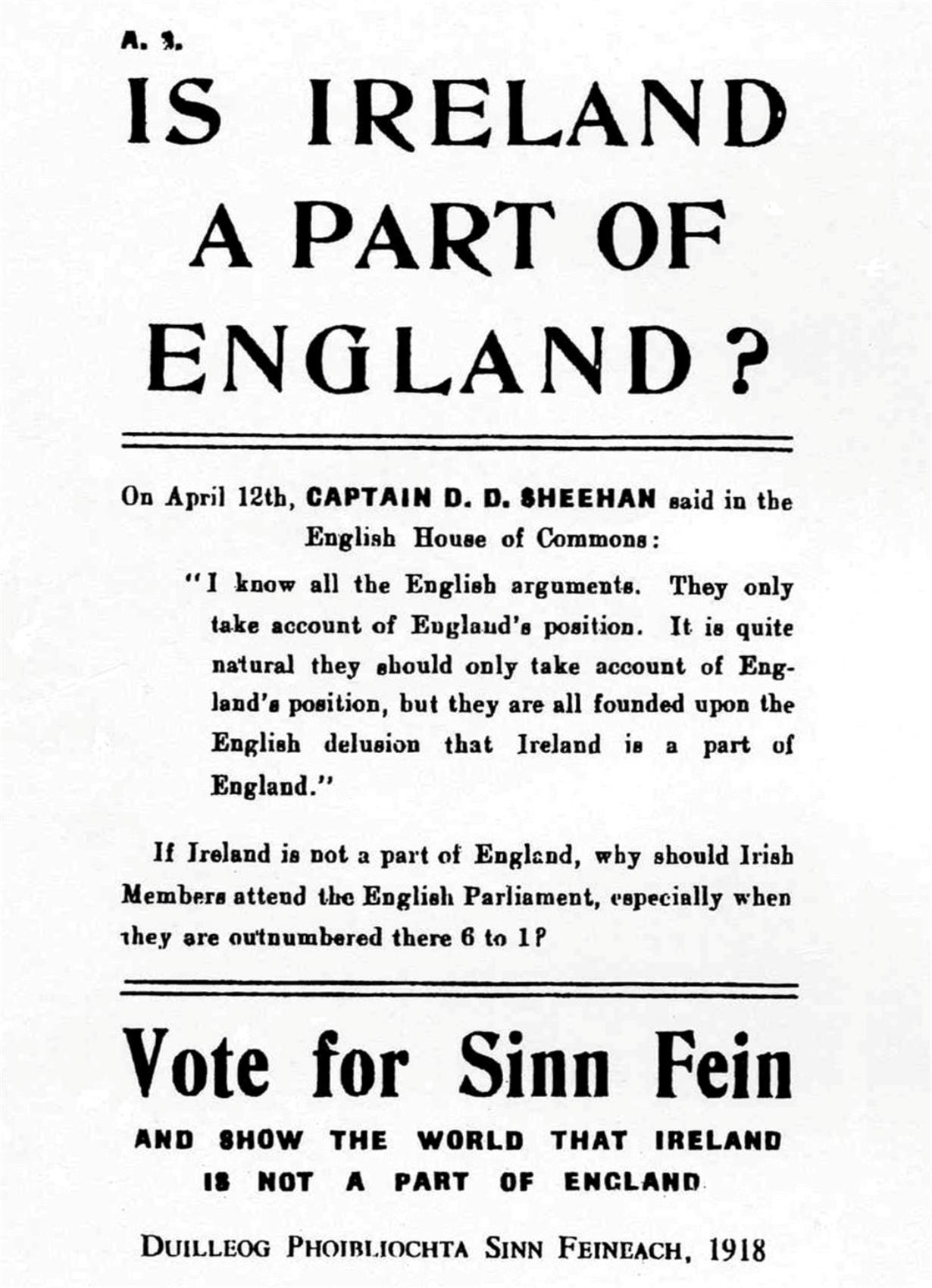 La reacción británica tuvo como consecuencia el triunfo en las elecciones del partido independentista Sinn Féin en la República de Irlanda, dicha formación se aprovechó de la acusación errónea de ser los impulsores de la rebelión cuando en realidad ni siquiera estuvieron implicados. El Sinn Féin se negó a acudir al parlamento de Westminster y constituyó una asamblea propia, la Dáil Eireann, que declaró la independencia de Irlanda el 21 de enero de 1919. Su líder era Éamon de Valera, uno de los detenidos por las autoridades británicas en la revuelta de 1916, y que se pudo escapar cuando iba a ser fusilado junto a sus compañeros. Entre ellos estaba también Michael Collins que llegó a asumir varios cargos dentro del gobierno provisional como el de presidente y director de inteligencia del IRA.