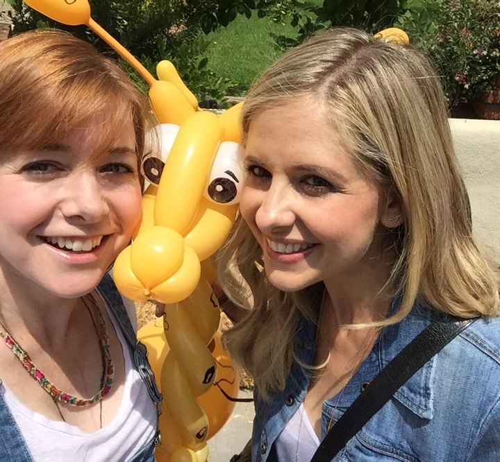 * Reencuentro de Sarah Michelle Gellar y Alyson Hannigan, actrices de la generacional serie "Buffy cazavampiros", en una fiesta en Santa Monica organizada por Hannigan y su marido.