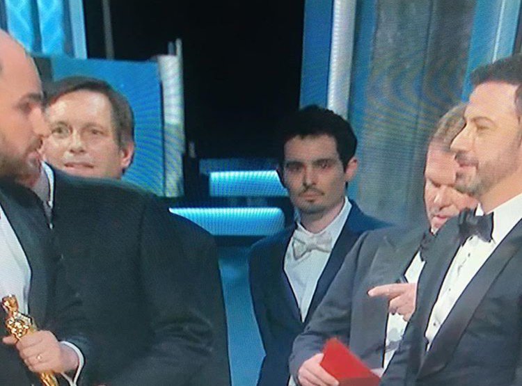 02:38h: Jimmy Kimmel habla de la América odiada por todos los países gracias a Trump. Los negros salvaron la NASA y los blancos el jazz. Pullas a Mel Gibson y a Matt Damon que tuvo la generosidad de darle el papel de "Manchester frente al mar" a Casey Affleck para luego protagonizar "La gran muralla". También referencias a la juventud de Damien Chazelle y a Isabelle Huppert de la que dice que ha fascinado su interpretación sin que nadie haya visto la película. También ha hablado de que Hollywood no discrimina por nacionalidad sino por edad y peso.