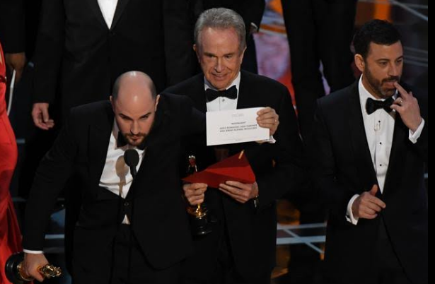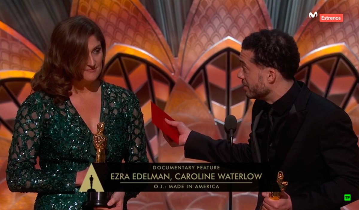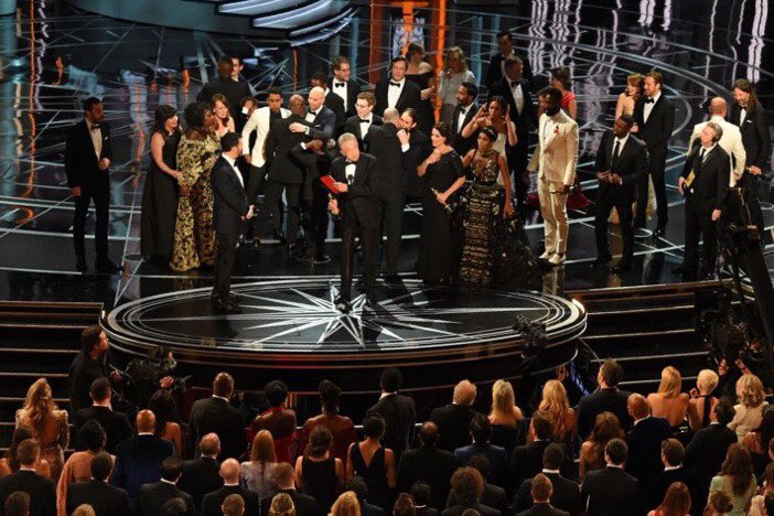 06:08h: "Moonligh" gana el Oscar a la mejor película tras un fallo histórico en los sobres que lleva a Warren Beatty a excusarse diciendo que en realidad le habían dado el sobre de mejor actriz.