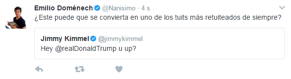04:50h: Jimmy Kimmel manda un mensaje de Twitter a Donald Trump que lleva desde que comenzó la ceremonia sin tuitear.