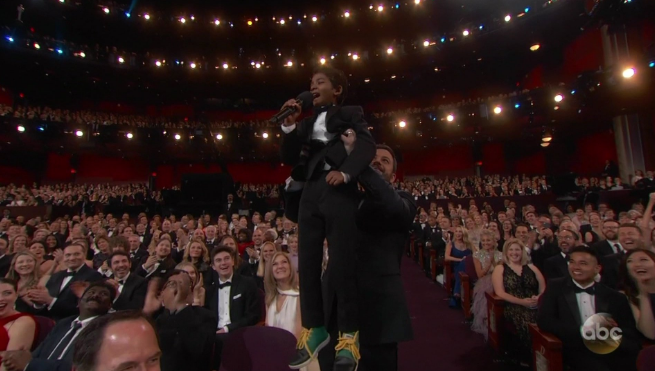 02:30h: La ceremonia empieza con la interpretación de la canción nominada "Trolls" cantada por Justin Timberlake. Todo un fenómeno que ha llegado desgastada pero que ha convertido el patio de butacas en un "after" con todos bailoteando.
