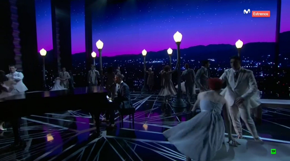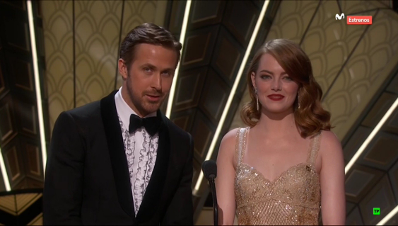 05:05h: Tras un vídeo con actores leyendo tweets en contra de ellos, Ryan Gosling y Emma Stone presentan a John Legend cantando las dos canciones de "La la land".