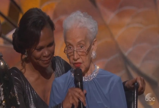 03:08h: Katherine Johnson, matemática nonagenaria a la que interpreta Taraji P. Henson en "Figuras ocultas", aparece para presentar el clip de "Figuras ocultas" y presentar el premio a mejor documental que entregan las actrices de la película. El documental ganador es "O.J.: Made in America" de Ezra Edelman de 7 horas y 47 minutos.