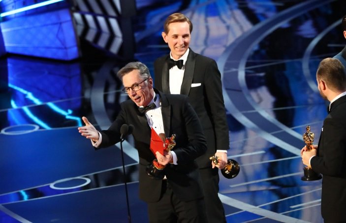 03:28h: Mejor montaje de sonido para "La llegada" y sonido para "Hasta el último hombre". Kevin O´Connell ha ganado gracias a esta película su primer Oscar tras 21 nominaciones lo que ha provocado uno de los momentos más emotivos.