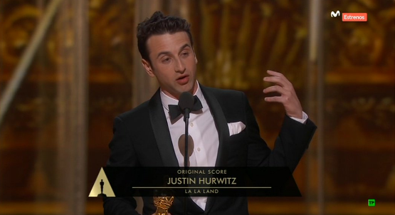 05:18h: Doblete musical para Justin Hurwitz con mejor banda sonora y mejor canción por "La la land".