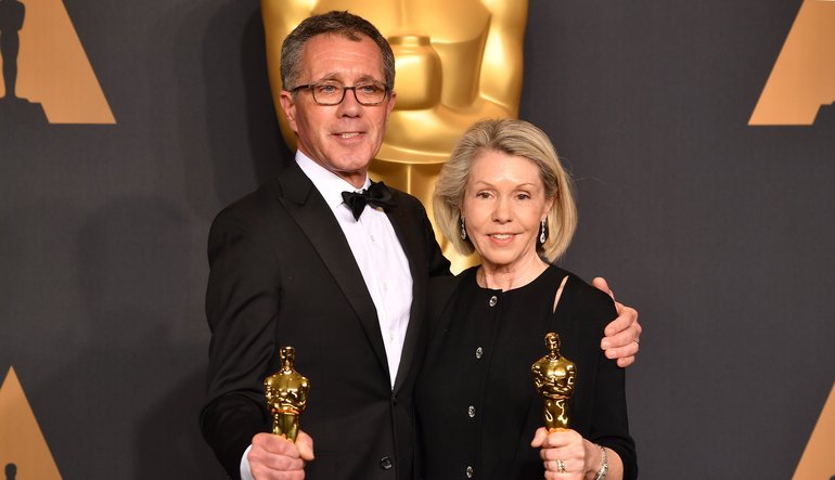 04:15h: "La la land" se lleva su primer premio de la noche con el diseño de producción entregado por Jamie Dornan y Dakota Johnson. Lo gana el matrimonio Wasco tras colaborar sobre todo en películas de Tarantino.
