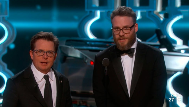 04:35h: Seth Rogen (que incluso se atreve a entonar "Hamilton") y Michael J. Fox presentan mejor montaje que va para "Hasta el último hombre".