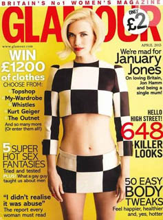 * Con la sexta temporada de "Mad Men" a la vuelta de la esquina, January Jones posa revestida de color en Glamour (UK). Todo un canto al optimismo ("Tengo una familia genial y buenos amigos y sé que si necesitara ayuda ellos estarían ahí, pero me siento muy bien haciendo las cosas por mí misma. Ser madre es algo que siempre quise y me encanta") y una confesión: ¿qué personaje le habría gustado interpretar en "Mad Men" si no fuera Betty Draper?. La respuesta: la Joan Harris de Christina Hendricks.