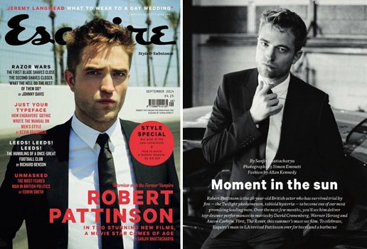 * Preguntado sobre el escándalo mediático que siguió a su ruptura con Kristen Stewart, Robert Pattinson responde de forma lacónica en el número de Septiembre de Esquire: "Son cosas de la juventud. Y, honestamente, ¿a quién le importa?". Pattinson se muestra descontento con el interés que despierta su vida personal: "Cuando hablas de otras personas les afecta de una manera que no puedes prever. Es como en esa escena de Philip Seymour Hoffman en 'La duda', esa en la que se pregunta qué debe hacer para hacer retroceder el rumor. Ellos tiran al cielo un montón de plumas de una almohada y eres tú quien tiene que ir recogiéndolas después".