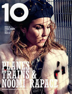 * Noomi Rapace en el número de primavera/verano de 10. Hace unos días adelantaba en una entrevista los planes de continuación de "Prometheus": "Coincidí con Ridley en Londres hace un par de semanas. Me encantaría trabajar con él de nuevo y sé que a él le gustaría hacer lo mismo. Solo tenemos que encontrar la historia adecuada. Si hacemos una segunda entrega de Prometheus, hay un montón de cosas para explorar allí y me encantaría hacerlo".