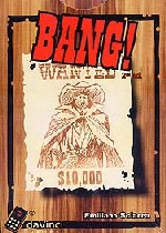 - Vamos con un juego que presenta un diseño muy original y ya está en el mercado. Se trata de "Bang" que con el pretexto de un juego de cartas tiene como fondo un homenaje al género del spaghetti western que inmortalizó Sergio Leone. Es el clásico juego de cartas, al que se le ha dado un toque cinematográfico con cartas claras y sólidas que permiten entretener al jugador. Es un juego de producción italiana elaborado a todo color, aunque existen algunas en toques blanco y negro para proporcionar más dramatismo durante el juego. Tiene un diseño cómodo que puedes llevar a cualquier sitio. Las instrucciones están en inglés e italiano así que si lo prefieres puedes visitar esta página española en la que puedes iniciarte en la dinámica del juego.