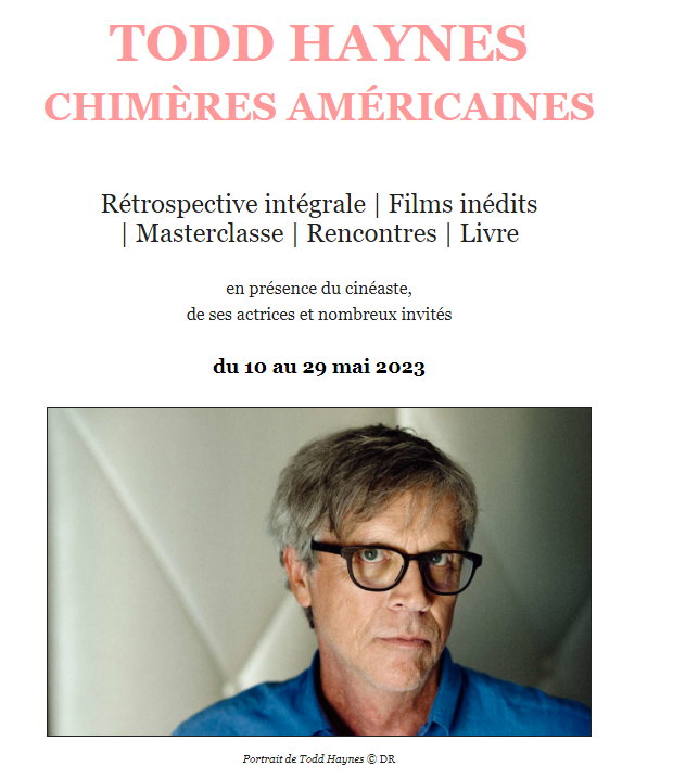 * Todd Haynes será el protagonista de una retrospectiva por parte del Centro Pompidou de París entre el 10 y el 29 de Mayo de 2023. Cate Blanchett, Kate Winslet, Julianne Moore y Christine Vachon serán algunas de las invitadas que rendirán tributo a un director siempre a reivindicar y que tiene en su haber títulos como "Velvet Goldmine" (1998), "Lejos del cielo" (2002), "I'm not there" (2007), "Mildred Pierce" (2011), "Carol" (2015), "Aguas oscuras" (2019) o "The Velvet Underground" (2021).