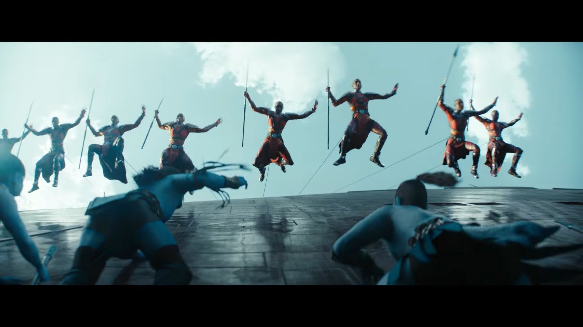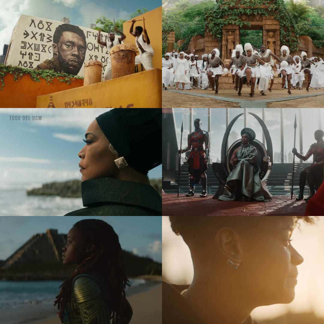 Bajo una excelente versión de No woman, no cry de Bob Marley se ve el regreso de los personajes de Shuri (Letitia Wright), Ramonda (Angela Bassett), Nakia (Lupita Nyong’o), M’Baku (Winston Duke), Okoye (Danai Gurira) o Everett K. Ross (Martin Freeman). Además se incorporan Riri Williams (Dominique Thorne) y Namor (Tenoch Huerta).