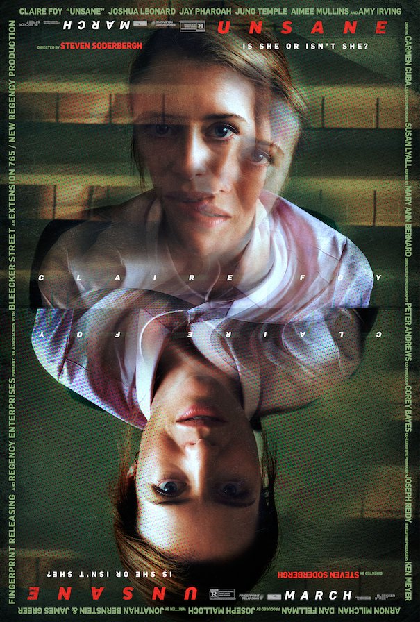 * “Unsane” es lo nuevo de Steven Soderbergh, cinta de bajo presupuesto rodada en una semana con un iPhone y que llevó a cabo tras la desapercibida "La suerte de los Logan", su regreso al cine tras un lustro. La premisa trata de una joven que ha sido enviada a un centro psiquiátrico y que vive con el temor de discernir lo que es real de lo que no. Jonathan Bernstein y James Greer escriben el guión de una cinta con un reparto en el que podemos ver a Claire Foy, Joshua Leonard, Jay Pharoah, Juno Temple, Aimee Mullins y Amy Irving. El estreno está previsto para el 23 de Marzo.