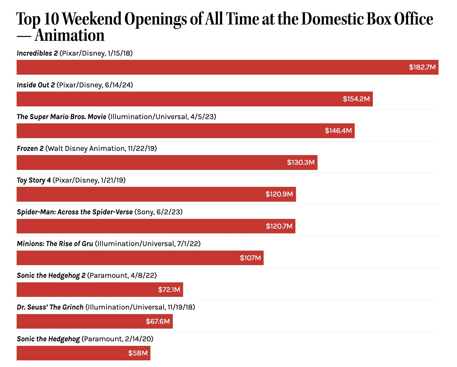 “Del revés 2 (Inside out 2)” deja al menos la sensación de que hay ciertos títulos que todavía tienen el tirón suficiente para llevar a la gente a las salas. A la espera de ver como funciona en España, teniendo en cuenta el clima de chiringuito, playa, fin de exámenes y Eurocopa, la nueva cinta de Pixar (y secuela de la película ganadora del Oscar de animación en 2016) marca 154,2 millones de dólares en su debut en Estados Unidos. A nivel mundial son unos espectaculares 295 millones. Mejor estreno del año y mejor debut animado sólo por detrás de “Los increíbles 2” con 182,7 millones. Ninguna película había conseguido esta entrada desde lo vivido con “Barbie” el verano pasado.