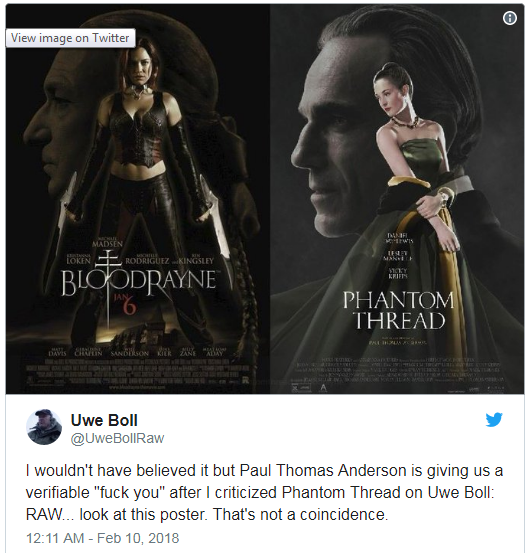* Uwe Boll (considerado uno de los peores directores de cine) ha alertado de que el poster de "El hilo invisible" es un plagio del de “BloodRayne”, película de 2005 de Boll. Que cada uno saque sus conclusiones.