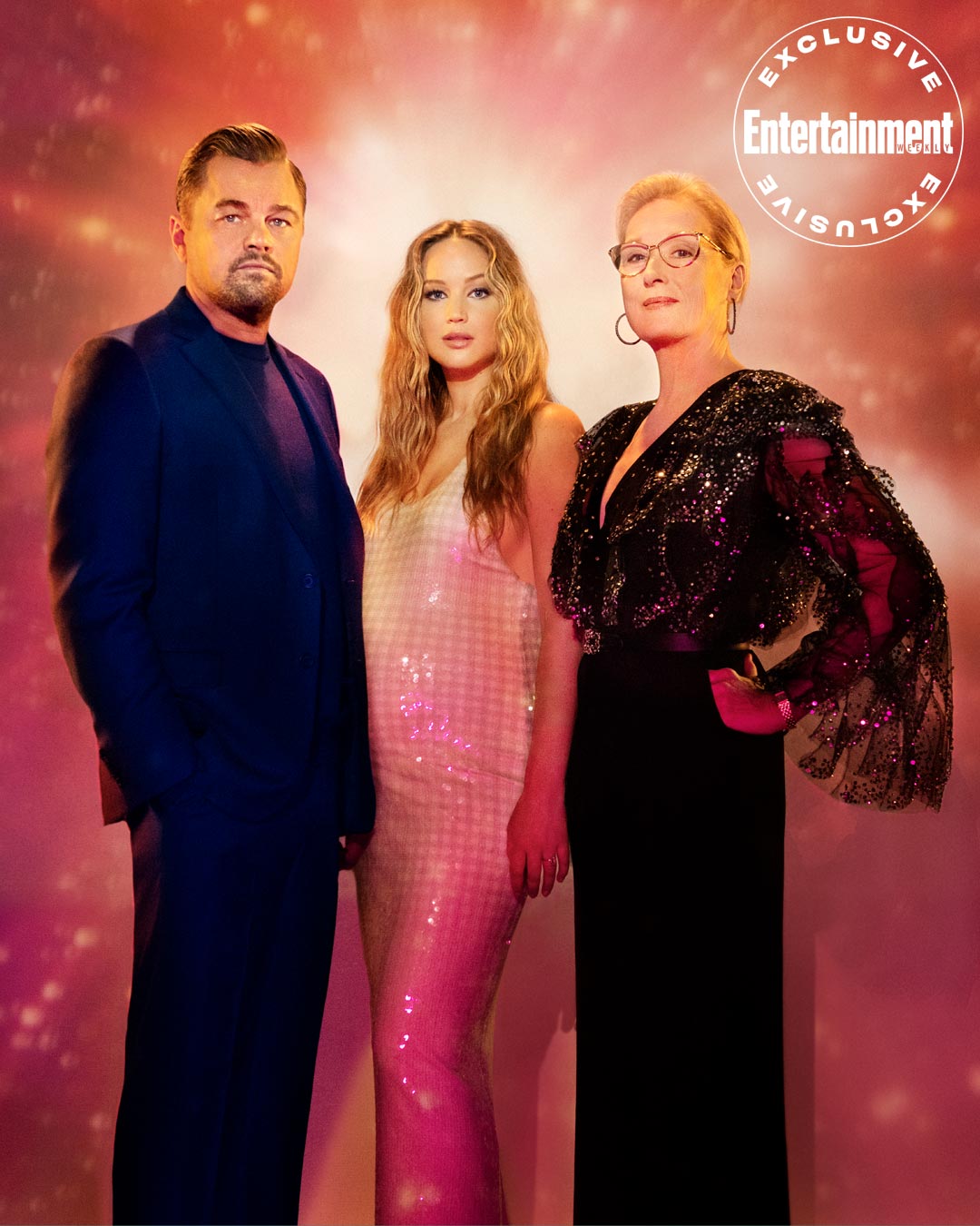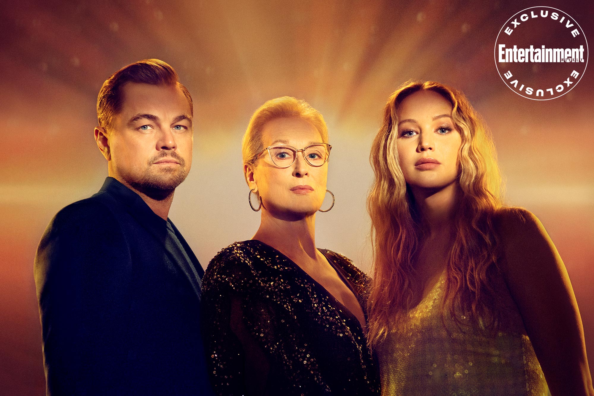 Dentro de la campaña promocional de la cinta hemos visto a Leonardo DiCaprio, Jennifer Lawrence y Meryl Streep mirando al cielo con temor en Entertainment Weekly.