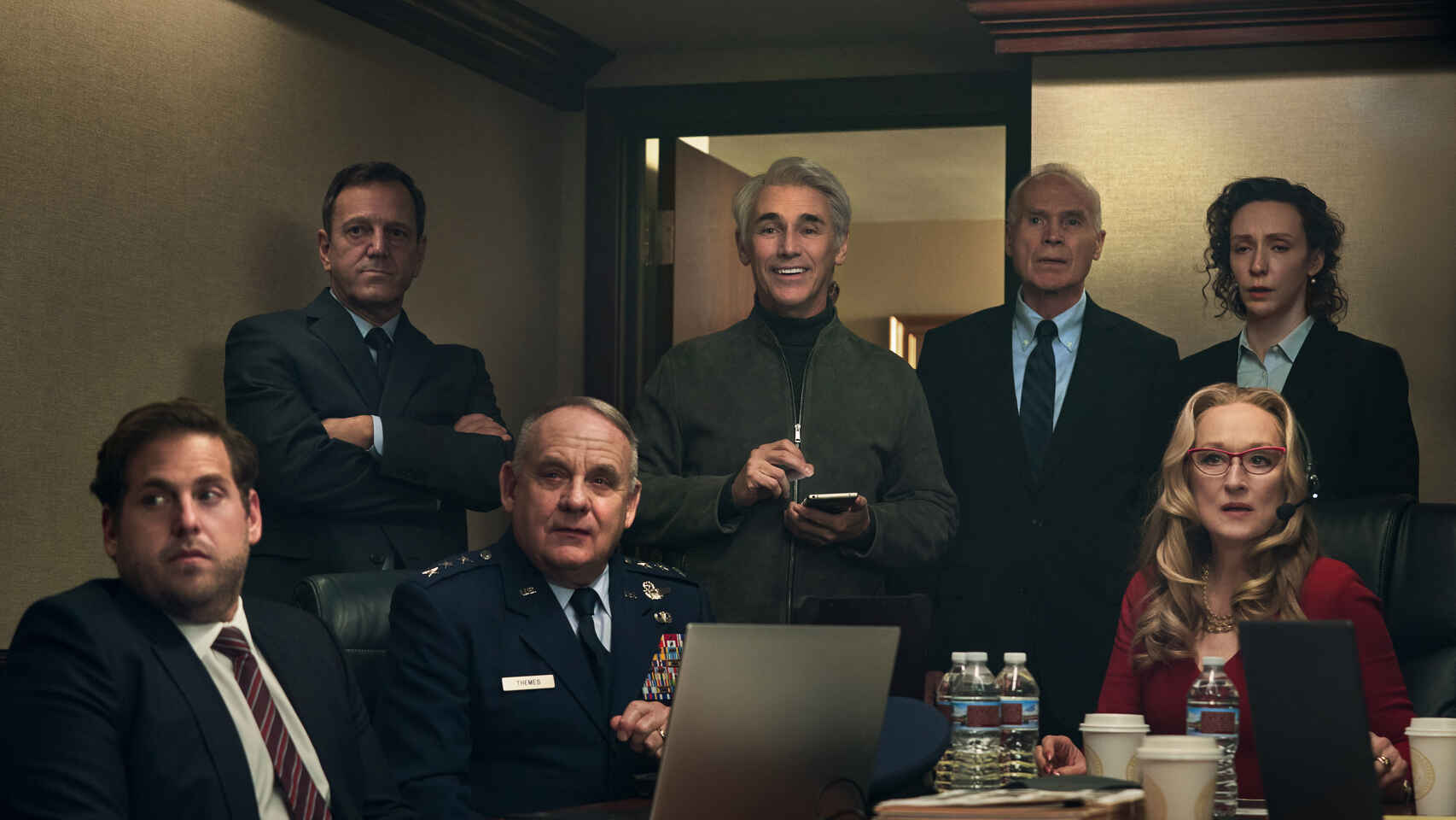 Un recorrido, que va desde un recóndito pueblo, platos de televisión, o hasta la propia Casa Blanca, siendo una excusa para encontrarse con un reparto espectacular encabezado por Leonardo DiCaprio y Jennifer Lawrence estando acompañados de Rob Morgan, Meryl Streep, Cate Blanchett, Jonah Hill, Himesh Patel, Timothée Chalamet, Ariana Grande, Kid Cudi, Gina Gershon, Tomer Sisley, Mark Rylance, Michael Chiklis, Melanie Lynskey, Tyler Perry y Paul Guilfoyle.