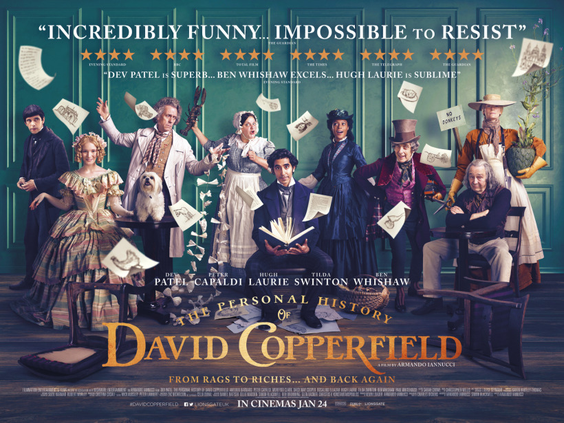 * “La increíble historia de David Copperfield” es la nueva cinta de Armando Iannucci inspirándose libremente en la novela de Charles Dickens sin abandonar ese ingenio y frescura que tiene el autor de películas como “In the loop” (2009) y “La muerte de Stalin” (2017) y series del tipo de “The thick of it” (2005) y “Veep” (2012-2019). Atención a ese reparto que forman Dev Patel, Tilda Swinton, Hugh Laurie, Peter Capaldi, Ben Whishaw, Aneurin Barnard, Gwendoline Christie, Benedict Wong y Paul Whitehouse en una cinta de cercanía, viveza y luminosidad que se pudo ver en el Festival de Toronto 2019 y que se hizo con 5 premios BIFA del cine independiente británico en las categorías de actor de reparto (Hugh Laurie), guión, reparto, diseño de producción y vestuario. Su estreno en USA está previsto para el 8 de Mayo. El estreno queda aplazado por la crisis del coronavirus (COVID-19) para el 28 de Agosto de 2020.