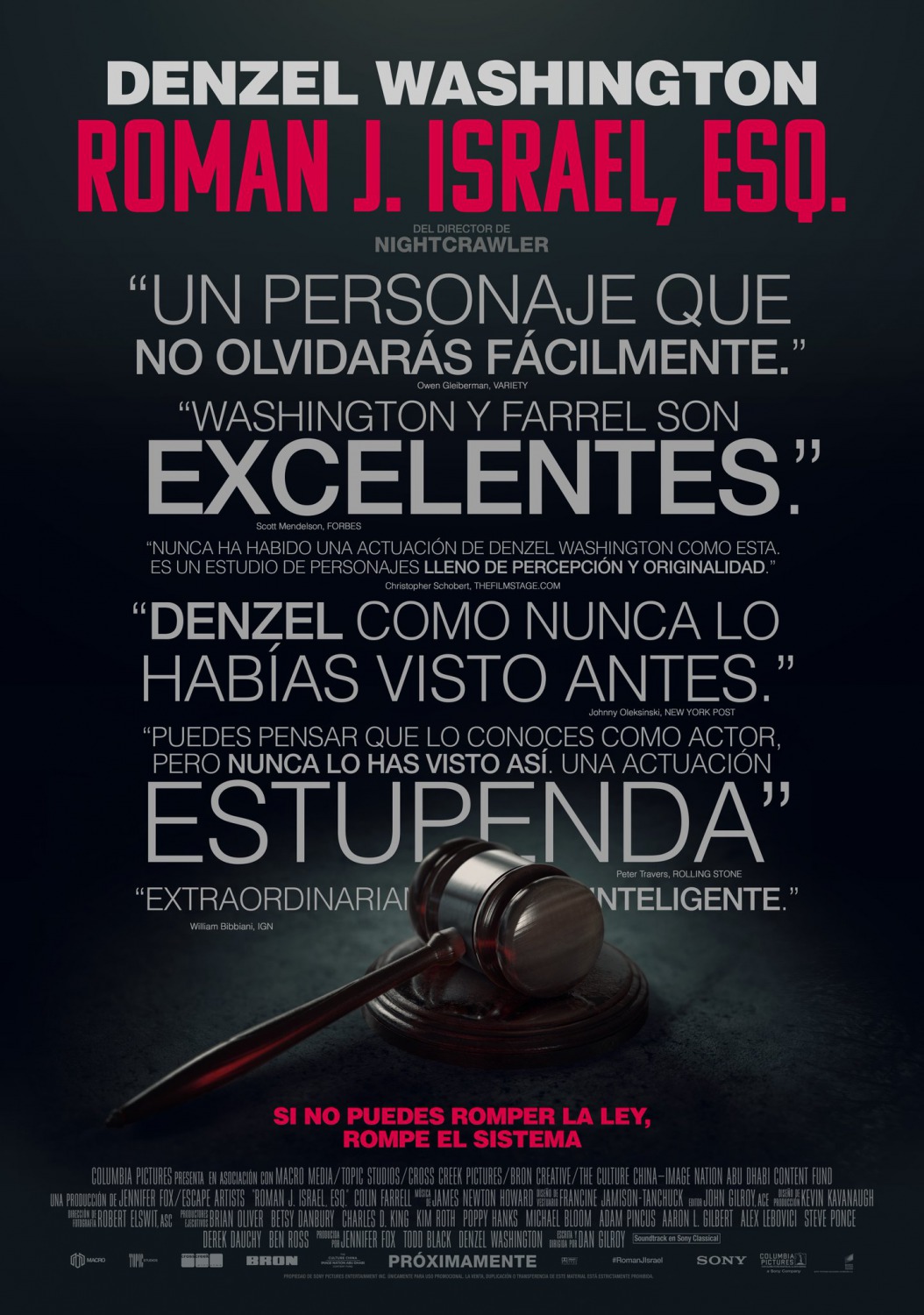 * Este es el aspecto de Denzel Washington en “Roman J. Israel, Esq.”, cinta de Dan Gilroy en la que el actor es un idealista abogado defensor que, debido a una serie de acontecimientos, se encuentra en una crisis que le conduce a una decisión extrema cuando por el fallecimiento de su socio se hace cargo del liderazgo de la firma de abogados en la que trabaja descubriendo las malas prácticas llevadas a cabo por la misma hasta el momento. Un personaje que, según las críticas, está muy por encima de una película demasiado tediosa y que es el actor el que la salva. Colin Farrell y Carmen Ejogo completan el reparto. El estreno en USA está previsto para el 3 de Noviembre y en España para el 4 de Mayo de 2018.