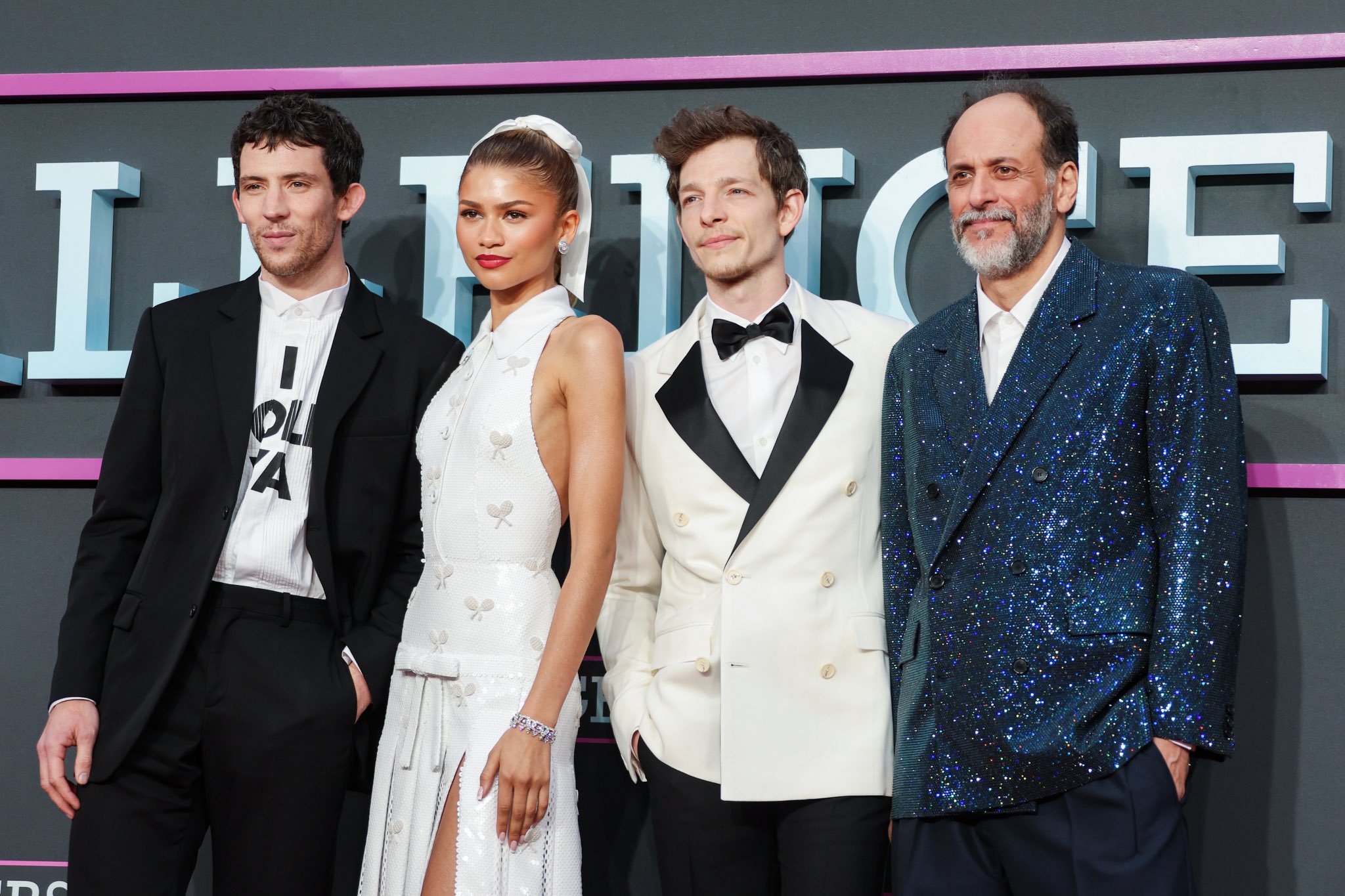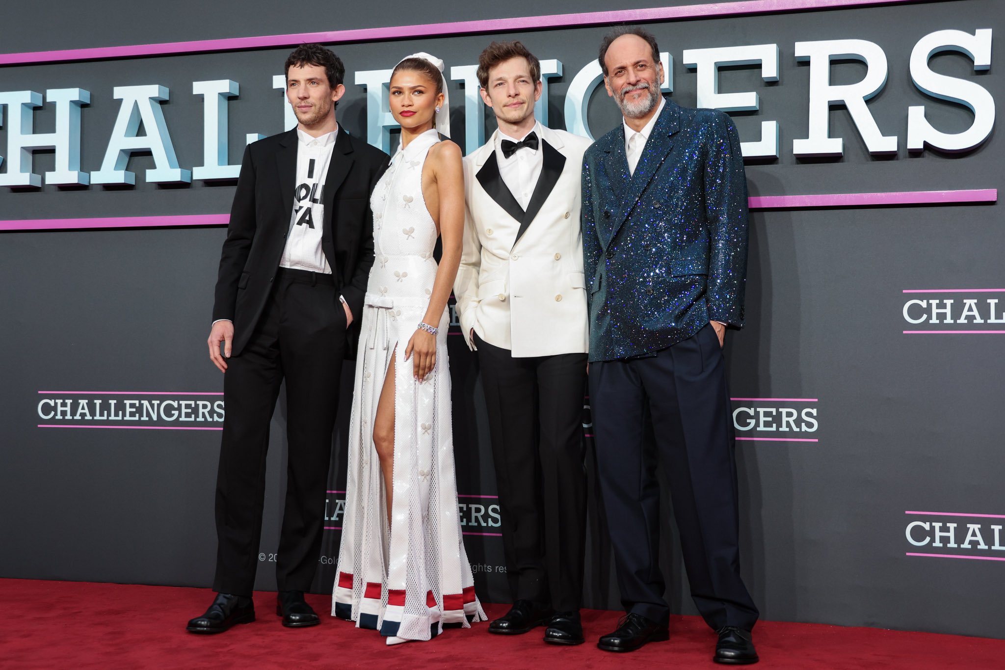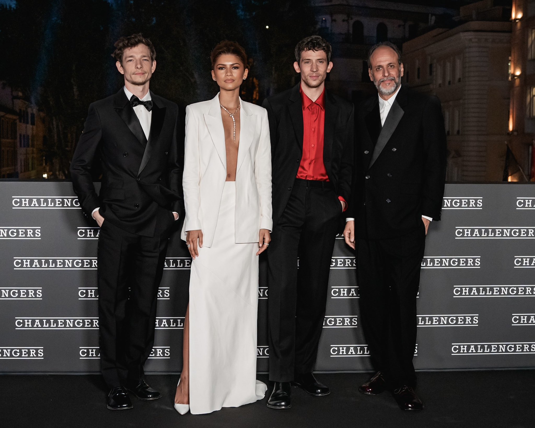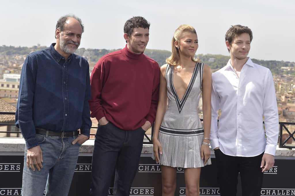 📹 Zendaya, Josh O’Connor, Mike Faist e Luca Guadagnino no tapete preto da premiere italiana de “Challengers” na Roma.