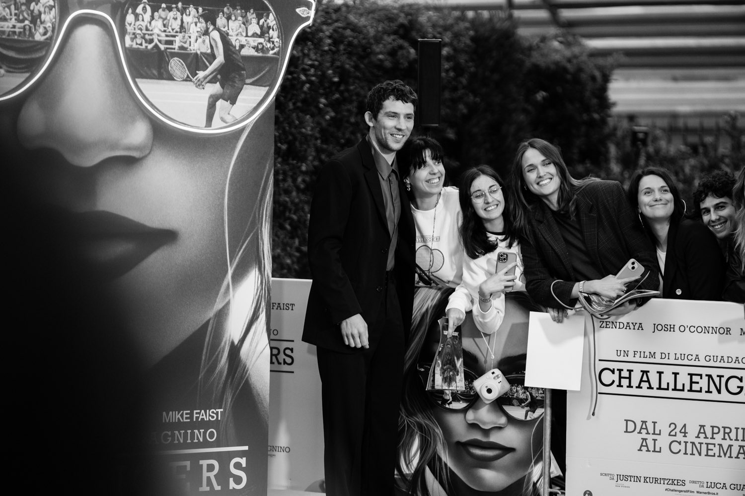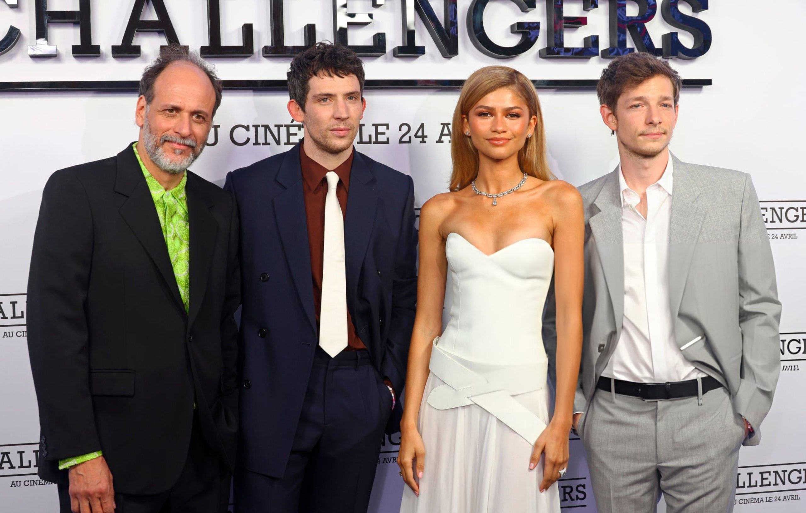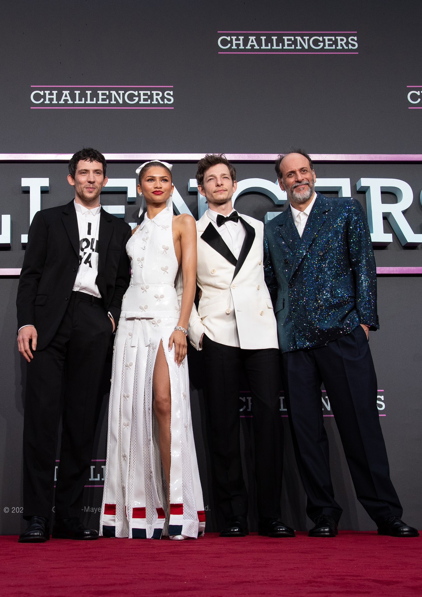 📹 Zendaya, Josh O’Connor, Mike Faist e Luca Guadagnino no tapete preto da premiere italiana de “Challengers” na Roma.
