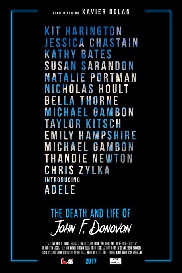 “The death and life of John F. Donovan” se centra en una estrella de Hollywood (Kit Harington) que comienza a cartearse con un fan de 11 años (Jacob Tremblay) que vive en Inglaterra con su madre (Natalie Portman). Cuando esto salga a la luz se cuestionará la conveniencia de esta relación a distancia disparándose los rumores y los cotilleos. No se puede negar que una vez más Dolan se inspira en una experiencia de su propia vida porque ya contamos en su momento la carta que envió a Leonardo DiCaprio una vez que un crío de 8 años llamado Xavier vio “Titanic”. En el reparto también Thandie Newton, Bella Thorne, Sarah Gadon, Emily Hampshire, Susan Sarandon, Michael Gambon, Jared Keeso, Kathy Bates, Amara Karan, Ben Schnetzer y Chris Zylka.