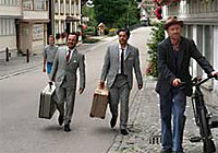 "Un franco, 14 pesetas" cuenta la historia de un español emigrante en Suiza en los años setenta. Es tierna, que llega al borde de la sensiblería pero no la traspasa gracias a que es muy sincera. Se acerca al tópico y la caricatura pero la humanidad de los personajes evita que resulte mal. Es para todos los públicos y la vi con una sonrisa en los labios todo el rato. Transmite mucho cariño porque el director también es el protagonista y la historia es la de su propio padre, aunque un poco enriquecida con otras anécdotas. Es una historia de emigración distinta, donde el emigrante fue feliz, se sintió muy contento y bien recibido.